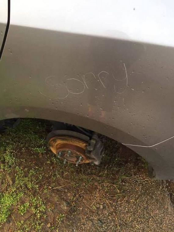 ホイール盗まれてさらにとどめのメッセージ。ひでぇ!