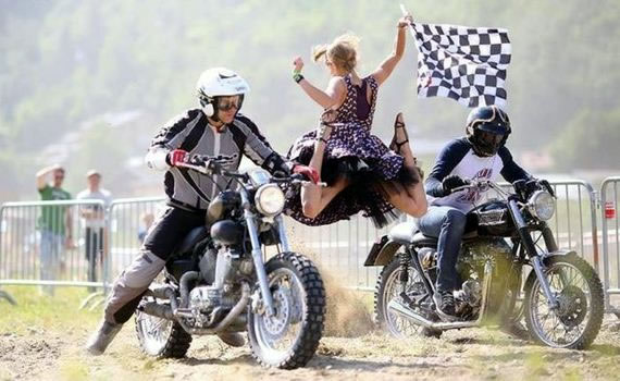 - 左のバイクの男性が女性の左足を掴んでスタートして…